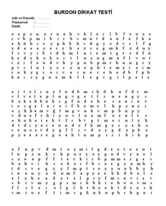 Çocuğa bir sayfa üzerine karışık sırada dizilmiş harfler verilir. Yönergede verilen belli harflerin altının kalemle çizilmesi istenir.
